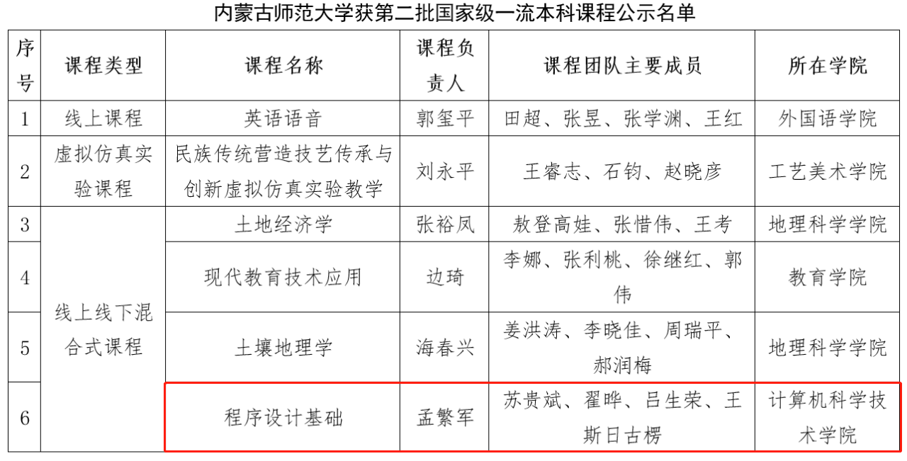 4月11日,教育部高等教育司发布了《关于第二批国家级一流本科课程认定结果的公示》,Best365官网程序设计基础教学团队负责建设的《程序设计基础》课程名列其中,是Best365官网被认定的第二门国家一流线上线下混合式一流课程。