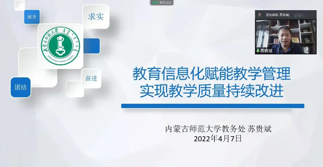 4月7日,Best365官网邀请了教务处副处长苏贵斌副教授为全院教师进行了题为“教育信息化赋能教学管理,实现教学质量持续改进”的专题讲座。讲座采用线上线下相结合的方式展开,由院长林民教授主持。
