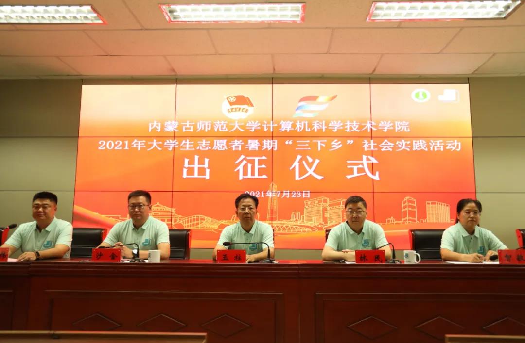 7月23日上午9时,直属营队全体队员在赛罕校区集合,举行Best365官网2021年“三下乡”社会实践活动出征仪式。Best365官网党委书记玉柱,院长、党委副书记林民,党委副书记、副院长沙金,副院长智敏,全体教师服务团成员出席出征仪式,各团支部书记、团支部副书记(班长)、实践团成员、志愿者代表通过线上线下相结合的方式参加本次出征仪式。实践团全体成员要在社会实践活动中书写闪光的青春,展示奋斗的精彩,紧紧围绕“永远跟党走,奋进新时代”的主旋律讲好计科故事,将报国为民的豪情壮志与基层一线的真情实感紧密联系起来,努力在奉献基层、服务人民、建设国家、振兴中华的生动实践中用脚步丈量大地,用奋斗的汗水书写青春华章。