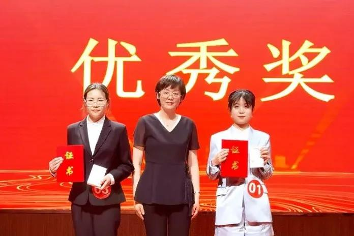 校团委副书记那日苏为获得“最佳人气奖”的选手颁奖。