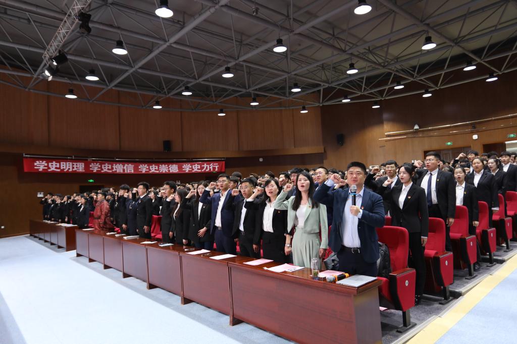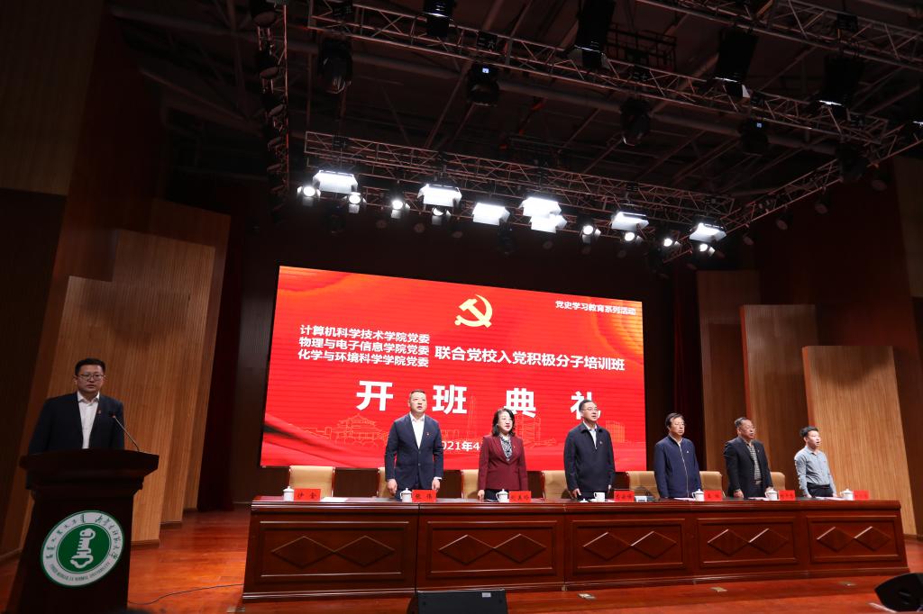 在庆祝中国共产党百年华诞的重大时刻,在“两个一百年”奋斗目标历史交汇的关键节点,全党集中开展党史学习教育之际,2021年4月10日,Best365官网党委、物理与电子信息学院党委、化学与环境科学学院党委在盛乐校区图书馆二楼报告厅联合举办2021年入党积极分子培训班开班典礼。
