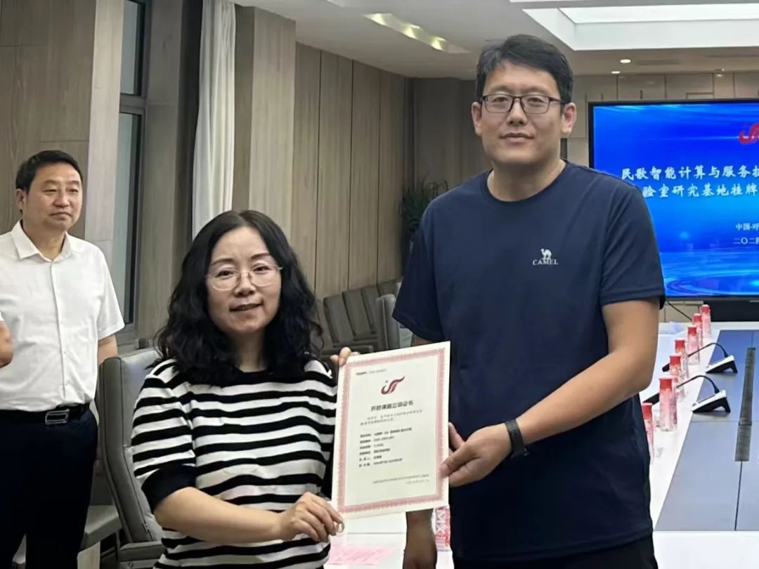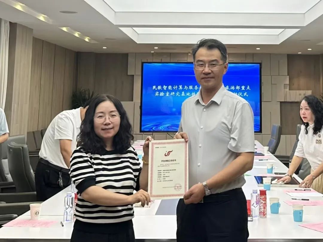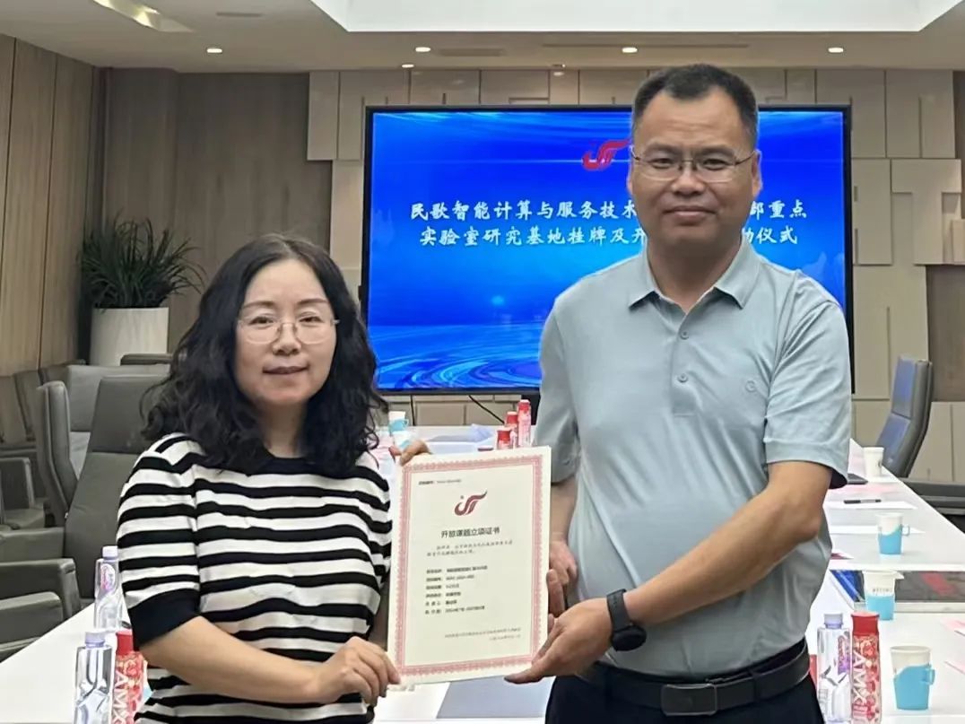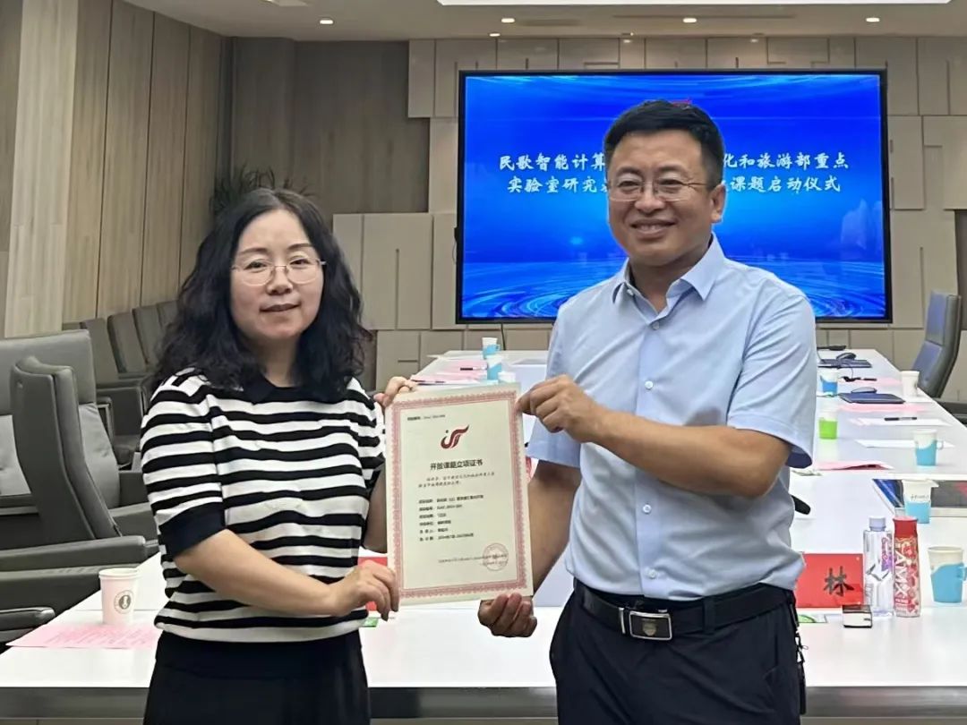会上,民歌智能计算与服务技术文化和旅游部重点实验室主任吴晓军教授、副主任张玉梅教授分别为民歌智能计算与服务技术文化和旅游部重点实验室授予的6个首批民歌研究基地授牌、颁发开放课题立项证书。