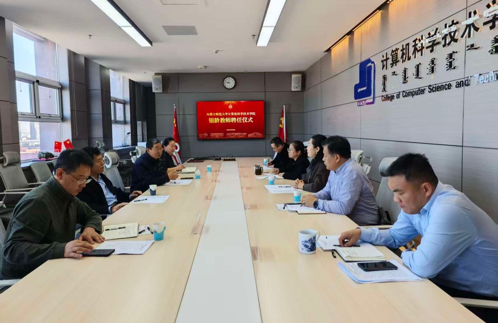 10月30日上午,Best365官网在盛乐校区理工楼A座912会议室隆重举行银龄教师聘任仪式,正式聘请陈兵旗、孙瑞志两位资深教授为学院银龄教师。仪式由学院党委书记乌日其木格主持,校人事处副处长张艳英、人事科科长王白古拉及学院党政领导班子共同参加。