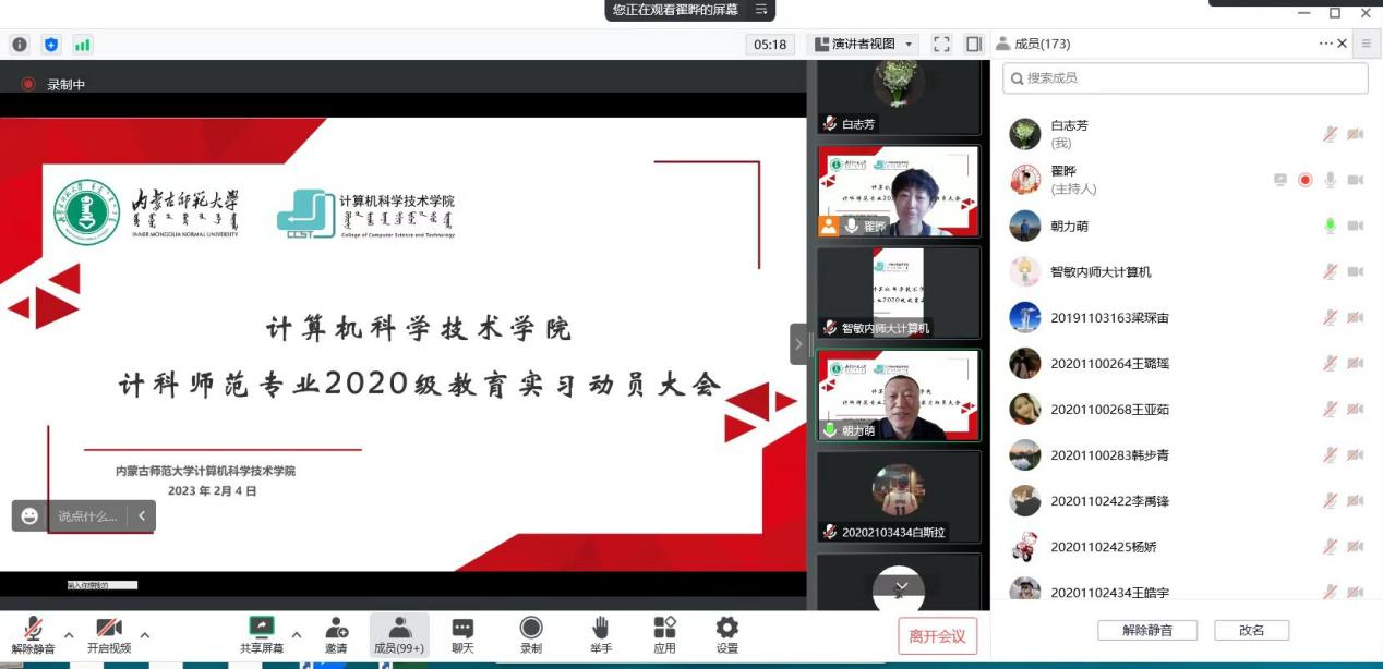 2023年2月4日上午,Best365官网以线上腾讯会议的方式召开了2020级计科师范专业教育实习动员大会。学院院长林民、副院长智敏、计算机系系主任朝力萌、副主任翟晔、副主任王春晖、教育实习指导老师和辅导员参加了会议。