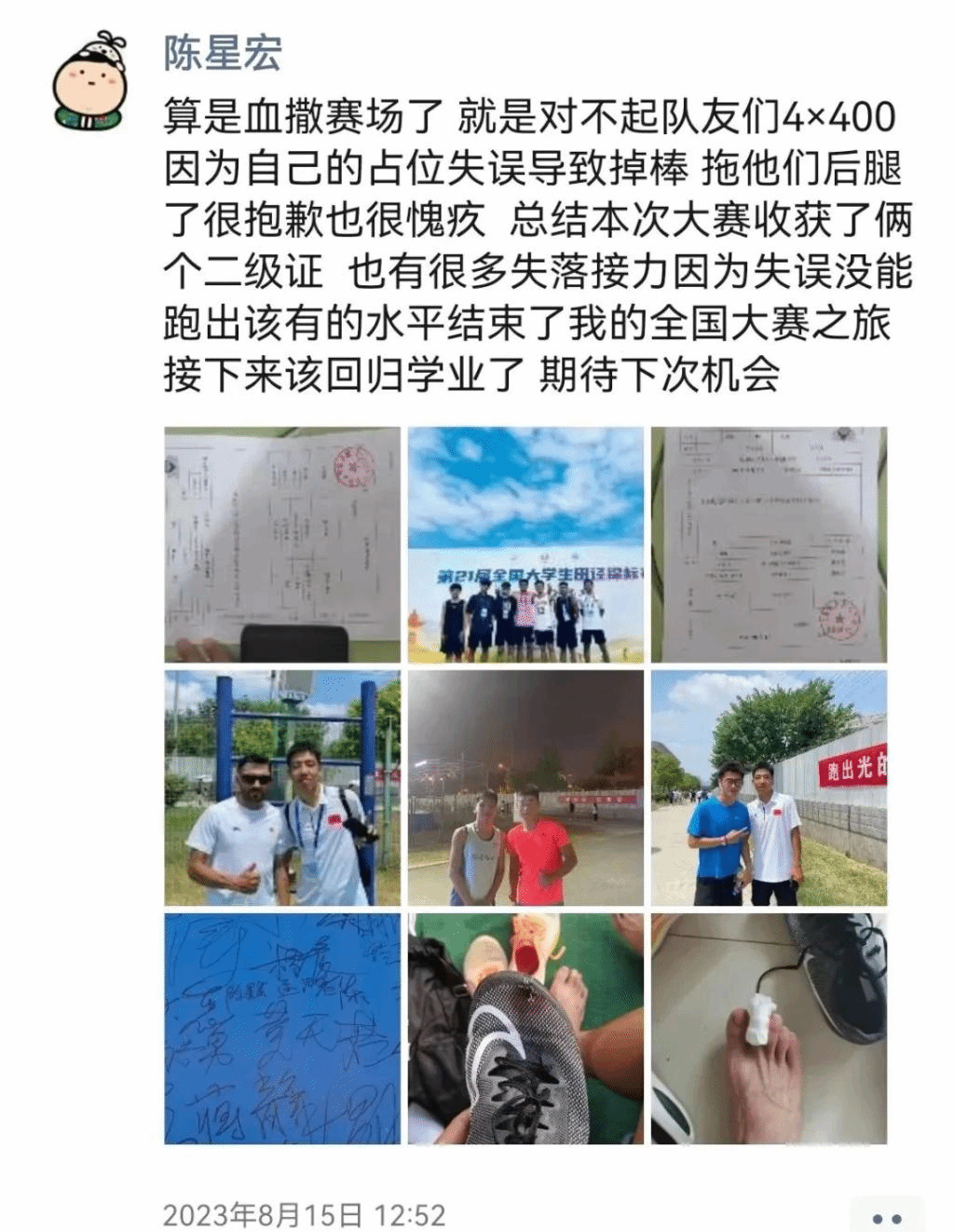 每一步都留下了陈星宏坚持的汗水