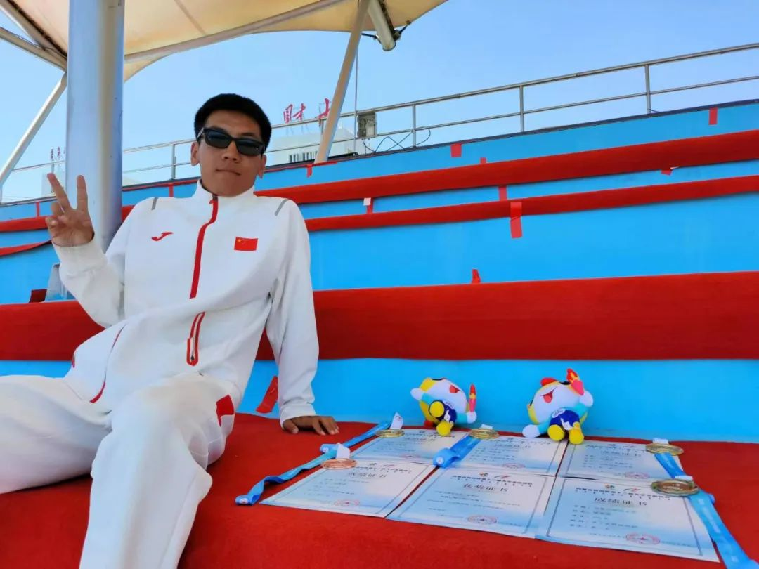 在他无数次努力和辅导员老师、体育教练的不断鼓励下