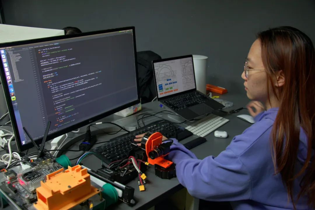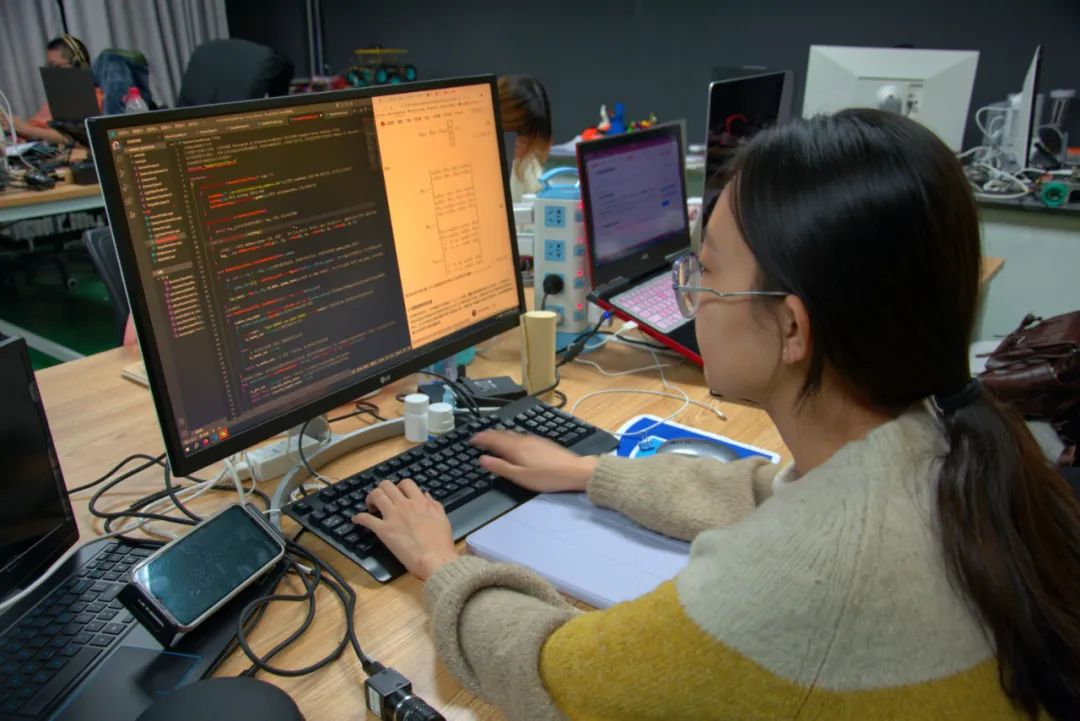 在机器人的设计和编程上反复推敲、试验