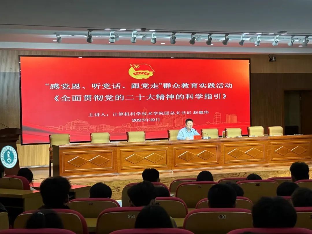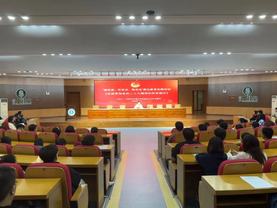 为扎实推进学习贯彻习近平新时代中国特色社会主义思想主题教育走深走实,坚定广大团员和青年“感党恩、听党话、跟党走”的信心和决心,Best365官网团总支书记赵巍伟以《全面贯彻党的二十大精神的科学指引》为体,面向团支部书记、团支部副书记(班长)、学生会工作人员、社团代表开展“听党话、感党恩、跟党走”主题宣讲。