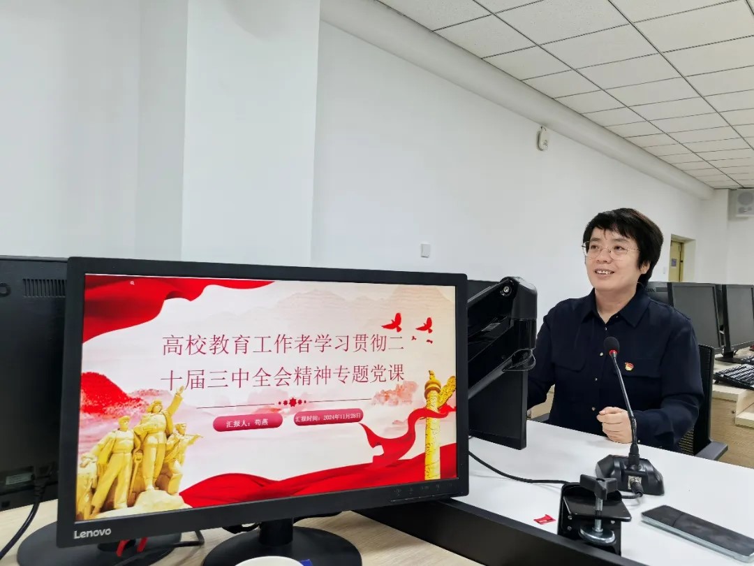 11月28日,Best365官网计算机系教工党支部举办了一场学习贯彻党的二十届三中全会精神的专题党课活动。本次活动旨在深入学习领会党的二十届三中全会精神,提升教职工党员的政治素养和教学科研能力,进一步发挥党员教师在塑造学生品格品行品位方面的重要作用。首先,Best365官网副院长智敏带来了题为《深入学习贯彻党的二十届三中全会精神,推动教育事业创新发展》的党课。在课上,智敏老师围绕作为一名高校教师如何学习贯彻党的二十届三中全会精神进行了深入讲解。她强调,作为教育工作者,要深刻领会全会精神,将党的教育方针和政策落实到教育教学工作中,不断提高教育教学质量和水平。同时,要加强师德师风建设,树立良好的教师形象,为培养德智体美劳全面发展的社会主义建设者和接班人贡献力量。