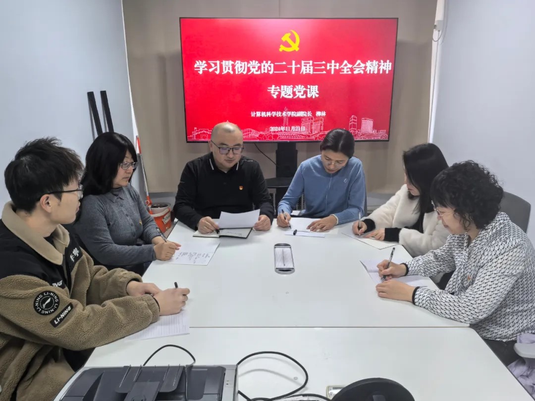 柳林以《深刻领会党的二十届三中全会精神,推动教育教学高质量发展》为题,从全面深化改革的重大意义和历史背景出发,结合高校教学科研的实践路径,阐述了全会提出的“六个必然要求”和“六个坚持”重大原则。他强调,三中全会是新时代新征程上全面深化改革的总动员,广大党员教师作为推进高等教育事业发展的中坚力量,要深入学习全会精神,将其融入到教学创新、科研攻关和人才培养等各项工作中。在党课中,柳林老师结合系部实际,提出教学科研是支撑事业发展的第一动力,并分享了三个具体方向:一是通过科研提升教学质量,以科研带动学术水平和教学内容的更新;二是加强学科建设,以科研成果服务专业发展;三是促进知识转化,将科研创新融入社会实际问题的解决。他还特别提到,系部2024年学生各类学科竞赛取得多项佳绩,正是支部党员教师立足岗位、深耕教学的成果体现。此次专题党课的学习进一步激发了党员教师的责任感与使命感。包正义同志表示:“作为教育工作者,我们将以全会精神为指引,立足岗位,发挥先锋模范作用,推动系部在科研教学等方面再上新台阶。”戚桂美同志结合学生就业指导工作,提出要在改革创新中持续完善就业帮扶体系,为学生成长成才保驾护航。数据科学与人工智能系教工党支部将以此次学习为契机,持续深化理论武装,创新党建工作模式,推动党的二十届三中全会精神在基层落地生根,为学院高质量发展贡献智慧与力量。