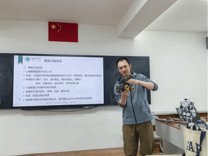 活动中,支部党员石淼老师从实际场景出发,介绍了机器人在工业制造、医疗服务、家庭生活等多领域的广泛应用,并对人形机器人的操作进行了现场演示,带领老师们深入了解其工作原理与操作要点。随后,石淼围绕智能小车相关技术,阐述了传感器技术、无线通信技术等在智能小车中的应用,同时结合物流运输、环境监测等应用领域,展现了智能小车的发展前景。